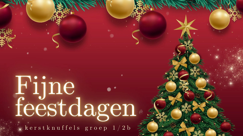 Alle kinderen van groep 1/2b wensen iedereen een hele fijne feestdagen toe! Geniet van de Kerstvakantie, maak mooie herinneringen samen en neem lekker de tijd om uit te rusten. Wij zien alle kinderen graag weer terug op 5 januari. Fijne feestdagen en een gelukkig nieuwjaar!